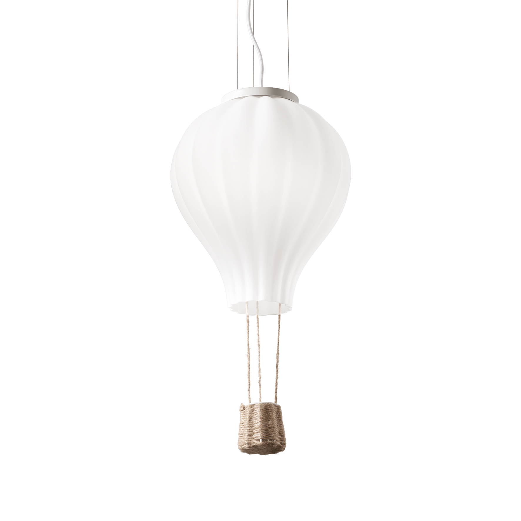 Hängeleuchter DREAM BIG SP1 D30 von Ideal Lux mit mattweiß lackierter Metallrosette. Stoffkabel. Diffusor aus geätztem weißem geblasenem Glas. Seilkorb. Glühbirne ausgeschlossen.