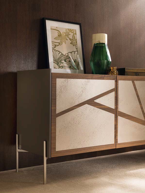 Rückseitiges Fujiko-Sideboard von Altacorte, erhältlich in zahlreichen Ausführungen mit der Möglichkeit einer maximalen Individualisierung der Türen. Dank der Auswahl an Ausführungen (Stahl oder Textur) der geometrischen Einsätze, aus denen sie bestehen, ist es auch möglich, die Basis des zu wählen Fujiko-Sideboard, erhältlich in verschiedenen Ausführungen, auch in zahlreichen Ausführungen erhältlich. Das Fujiko Sideboard ist in zwei Größen erhältlich.