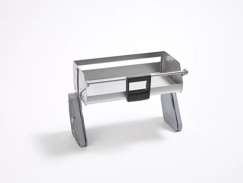 Die Bedienung erfolgt mit nur einer Hand. Mit einer einzigen, eleganten Bewegung bewegt sich der gesamte obere Boden nach unten und vor den Schrank. So erreichen Sie Ihre zu verstauenden Gegenstände noch leichter.
