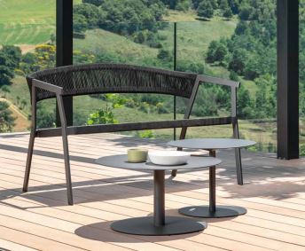 Der Couchtisch aus Talentis Key-Kollektion hat eine runde Tischplatte und ist vollständig aus Aluminium gefertigt. Der Key-Couchtisch ist in zwei Größen erhältlich.