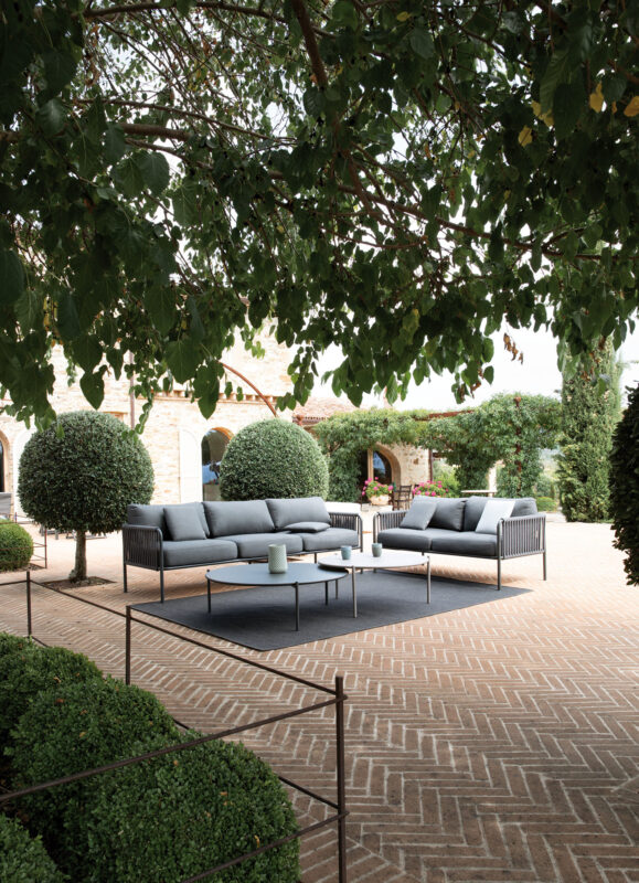 Das elegante und funktionale Dreisitzer-Sofa Key West ist in zahlreichen Ausführungen erhältlich: Sie können beispielsweise die Farbe des Metallrahmens, des Seils und der Kissen auswählen.