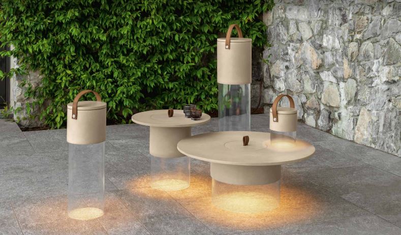 Die Kukà-Lampe, erhältlich in drei Größen, ist ein aus umweltfreundlichen Materialien gefertigtes Wohnaccessoire, dessen Design zu jedem Stil und Ambiente passt. Der Sockel aus Methacrylat der wiederaufladbaren Lampe streut das Licht und trägt ein rundes Harzelement mit Ledergriff.