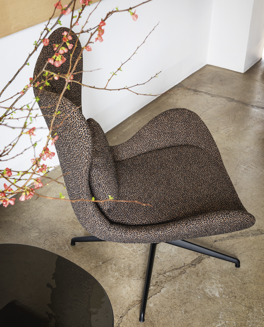Das weiche Sitz- und Lendenkissen ruht auf dem umhüllenden Körper aus kaltgeschäumtem Polyurethan. Für noch mehr Komfort ist diese Version mit Metallfuß mit einem Kipp- und Schwenkmechanismus ausgestattet.