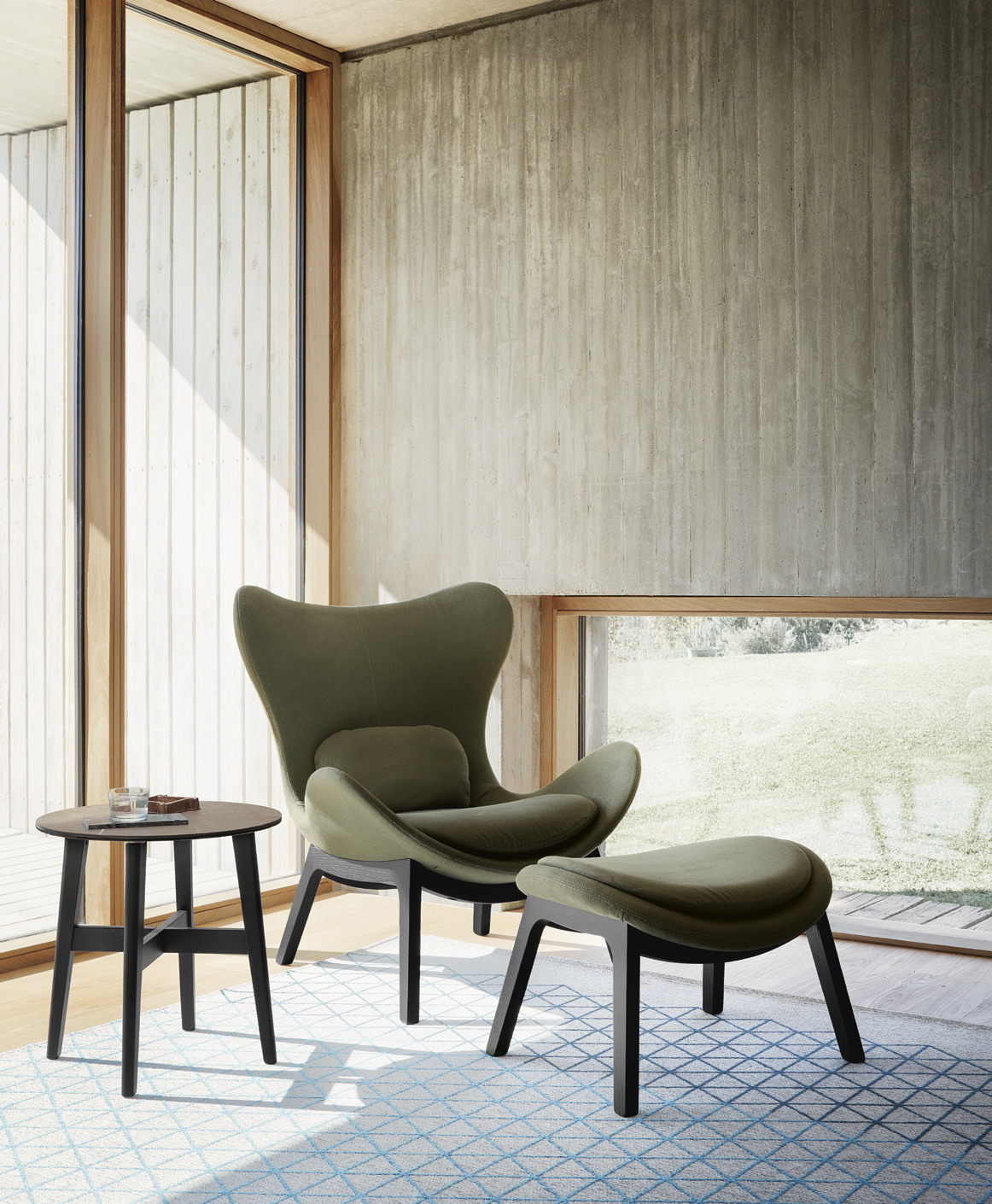 LAZY ist der Sessel mit geschwungenen Linien und einer großen, einladenden Sitzfläche, der Sie in Ihren Momenten der Entspannung begleitet.