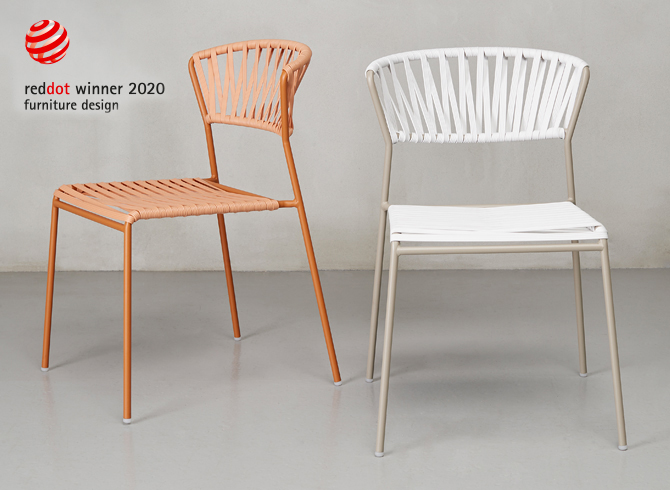 Ein Stuhl mit erfrischendem Flair: Sitzfläche und Rückenlehne aus PVC-Fasern sorgen für Praktikabilität, einfache Handhabung und Stapelbarkeit – eine Hommage an die Gärten vergangener Zeiten. Dieses unverzichtbare Möbelstück für den Außenbereich besticht durch seine lässige und zugleich elegante Optik, die durch die Kombination von Gestell und Struktur entsteht. Ideal für den Objektbereich, verleiht er Bars und Restaurants am Wasser eine sommerlich-leichte Note.