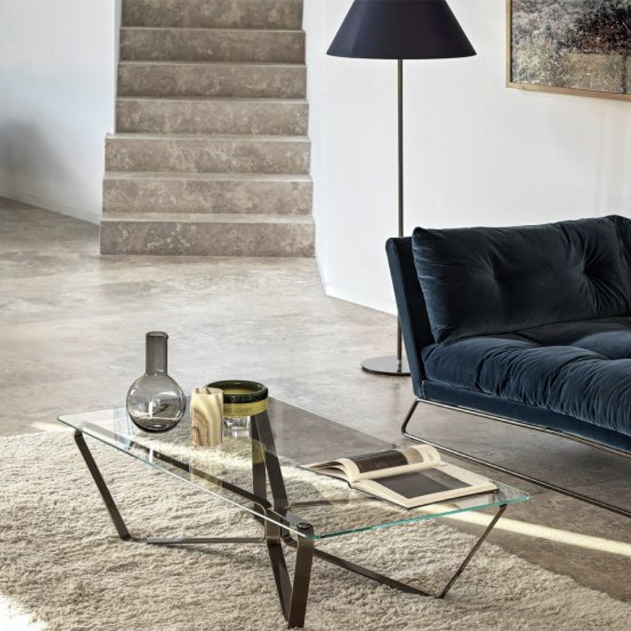 Loop-Couchtisch mit lackierter Stahlstruktur in verschiedenen Farbtönen und Glasplatte, erhältlich in der rechteckigen oder quadratischen Version. Es handelt sich um einen Couchtisch mit schlichten und gleichzeitig originellen und eleganten Linien, der der Umgebung, in der er sich befindet, einen Hauch von Stil verleihen kann.