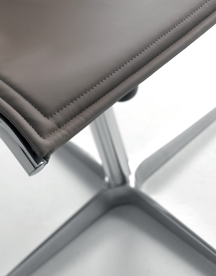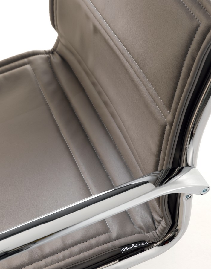 Bürostuhl Lux von Olivo & Groppo mit gepolsterter Sitzfläche in verschiedenen Stoffen und Farben und einem Gestell mit Rollen. Dieser vielseitige und elegante Chefsessel besticht durch seine raffinierten technischen und ästhetischen Lösungen. Die raffinierte Verarbeitung der Polsterung, kombiniert mit Chromoberflächen und poliertem Aluminium, wertet das Design auf und macht ihn für jede funktionale Umgebung geeignet. Die exquisiten Nähte und Polsterungen, kombiniert mit der Qualität und Verarbeitung der Materialien, verleihen der Kollektion ein elegantes und unverwechselbares Design, das typisch für die DNA unseres Unternehmens ist. Dank seiner Vielfalt an funktionalen, ästhetischen und mechanischen Lösungen ist er auch ein wertvolles und elegantes Einrichtungselement für Wartezimmer und Besprechungsräume.