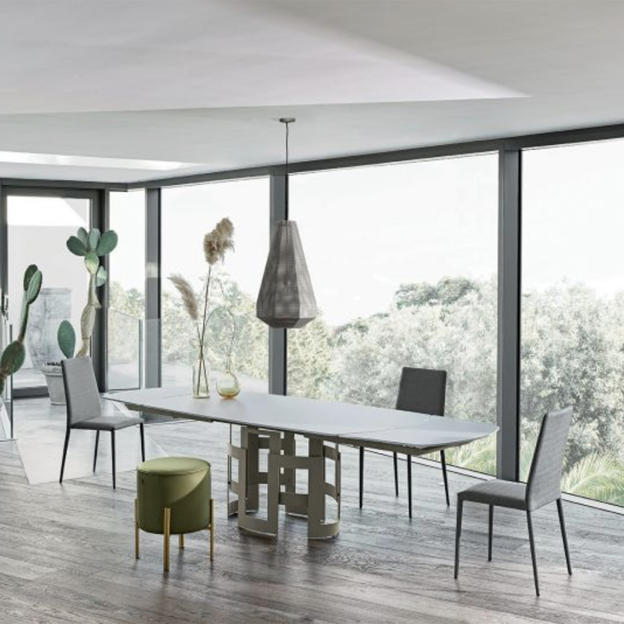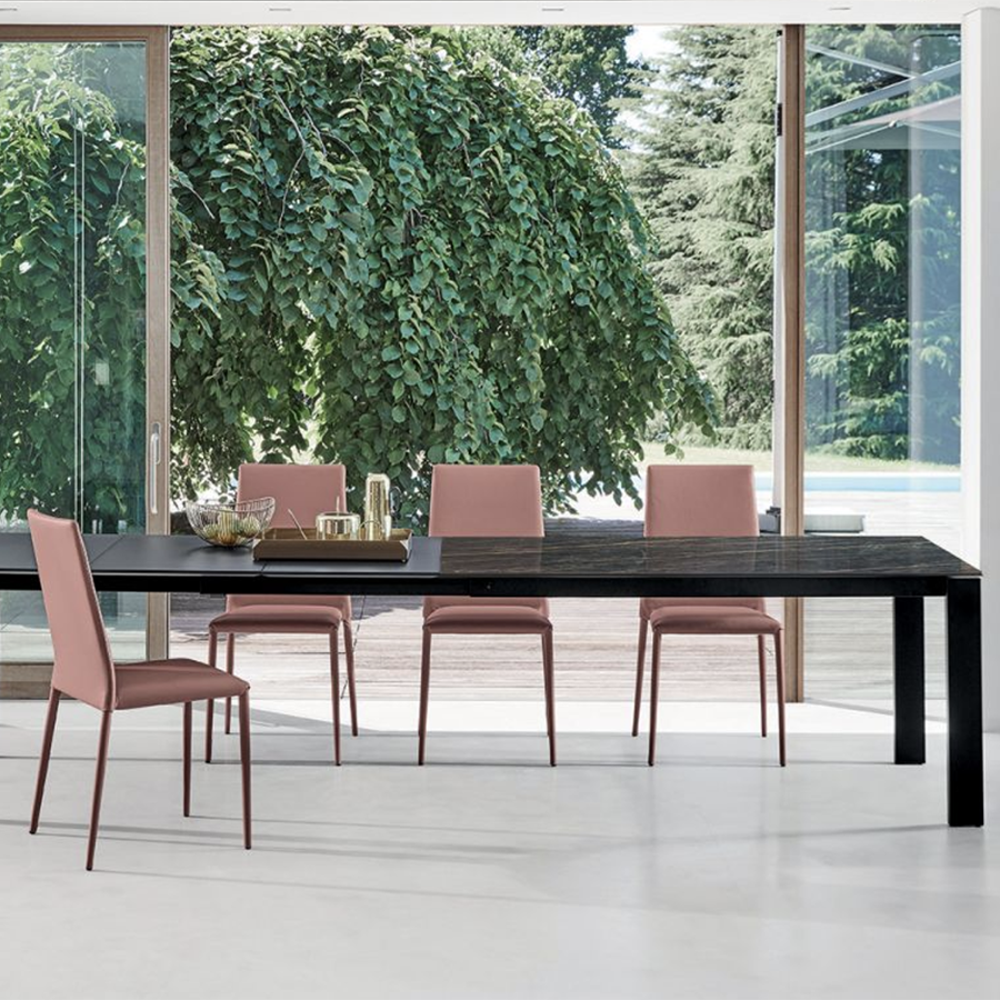 Der Stuhl Malik von Bontempi aus Kunstleder, Leder und Stoff ist ein moderner Stuhl für das Wohnzimmer, der sich durch sein geradliniges und elegantes Design auszeichnet und in verschiedenen Farben erhältlich ist. Die Struktur besteht aus Stahl und ist vollständig in der gleichen Farbe wie Sitz und Rückenlehne gepolstert: Das Ergebnis ist ein einfarbiger, für ein Wohnzimmer geeigneter Stuhl mit modernem Design, der sich auch sehr gut als Ergänzung zu wichtigen Tischen aus Holz und Holz eignet Glas .