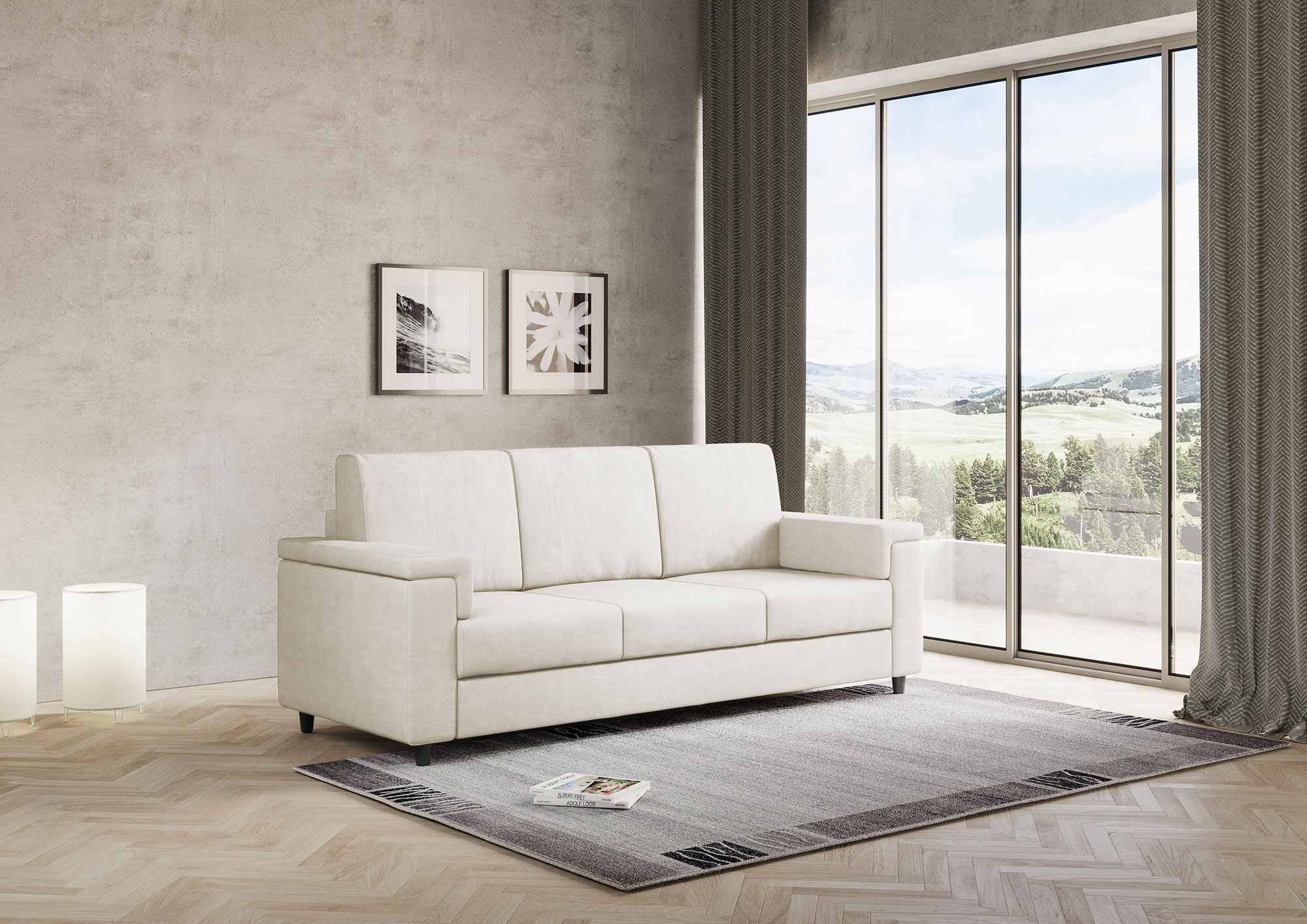 Verleihen Sie Ihrem Wohnzimmer mit unserem 3-Sitzer-Sofa einen Hauch von Stil und Komfort. Mit seinem eleganten und komfortablen Design ist dieses Sofa die perfekte Ergänzung, um eine gemütliche und stilvolle Atmosphäre in Ihrem Zuhause zu schaffen. Der Sofasitz garantiert außergewöhnlichen Komfort dank der gleichmäßigen Gewichtsverteilung auf dem Kissen, die durch den Kontakt mit der Rückenlehne gewährleistet wird. Sie können bequem entspannen und angenehme Ruhemomente ohne Beschwerden genießen. Dieses Sofa besteht aus hochwertigen Materialien, darunter einem stabilen Rahmen und einer hochdichten Schaumstoffpolsterung, und bietet langfristige Haltbarkeit und Komfort. Sie werden jahrelang Freude an Ihrem Sofa haben, ohne auf sein elegantes Aussehen und seinen Komfort verzichten zu müssen. Das elegante und moderne Design des Sofas passt sich problemlos jeder Umgebung und jedem Einrichtungsstil an. Die klaren Linien und der minimalistische Look verleihen Ihrem Wohnzimmer einen Hauch von Eleganz. Darüber hinaus sind die Farben der Bezüge vielseitig und lassen sich leicht mit den anderen vorhandenen Möbeln kombinieren. Das 3-Sitzer-Sofa Marrak ist die ideale Wahl für alle, die in ihrem Zuhause maximalen Komfort und Stil suchen. Indem Sie es Ihrem Raum hinzufügen, können Sie eine einladende Umgebung für Sie, Ihre Familie und Ihre Freunde schaffen. Genießen Sie angenehme Momente der Entspannung und Geselligkeit in der Gewissheit, dass Sie ein Qualitätssofa haben, das Sie lange begleiten wird.
