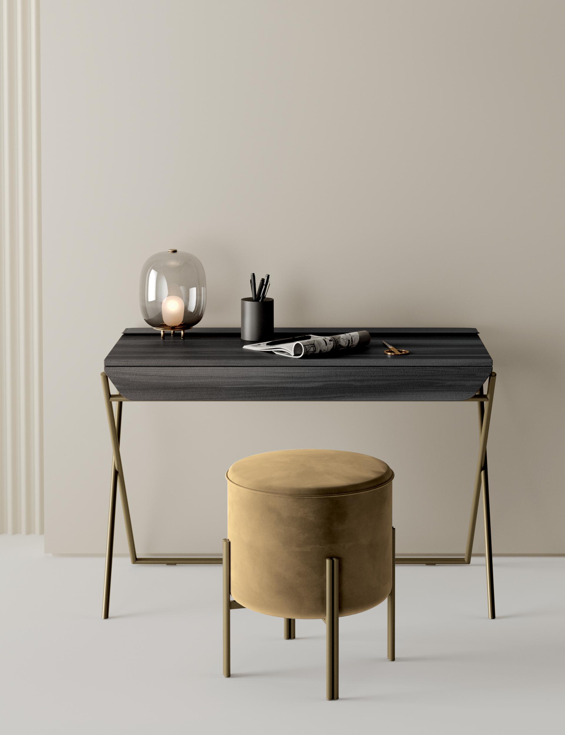 Matisse-Schreibtisch von Bontempi mit lackierter Stahlstruktur, Schubladenoberseite aus furniertem Holz, aufklappbarem Staufach aus Leder mit passenden Nähten.