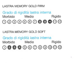 Innovative und wissenschaftliche Materialforschung hat es ermöglicht, diese hochtechnologische Verbindung mit außergewöhnlichen Ergebnissen zu entwickeln. Ergonomisch, da es sich perfekt an jeden Teil des Körpers anpasst und eine perfekte und ausgewogene Unterstützung bietet; wärmeempfindlich, da die Körpertemperatur auf die molekulare Struktur dieses Materials einwirkt und es weich und flexibel macht; langsames Gedächtnis, da es langsam seine ursprüngliche Form wiederherstellen kann. Es verfügt außerdem über starke hypoallergene, milbenhemmende, antibakterielle und antistatische Eigenschaften. Memory Gold SOFT MAXXI