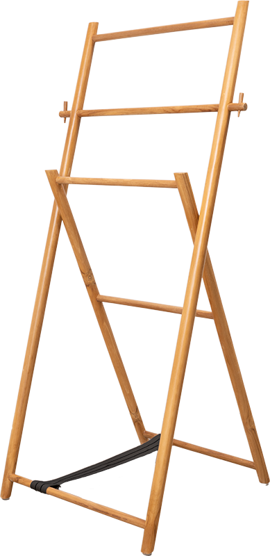 Komplett aus gebürstetem Teakholz gefertigt, ist Milord mehr als ein Handtuchständer! Er ist höher als der Standard und ermöglicht das ordentliche Aufhängen von bis zu sechs Handtüchern oder Waschlappen. An den praktischen Seitenhaken können zwei Handtücher gebrauchsfertig untergebracht werden.