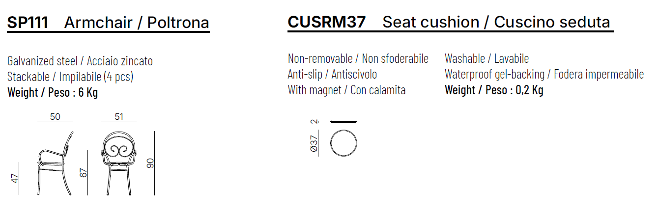 cm: L. 51 x T. 50 x H. 90 x HS. 47 x HB. 67
