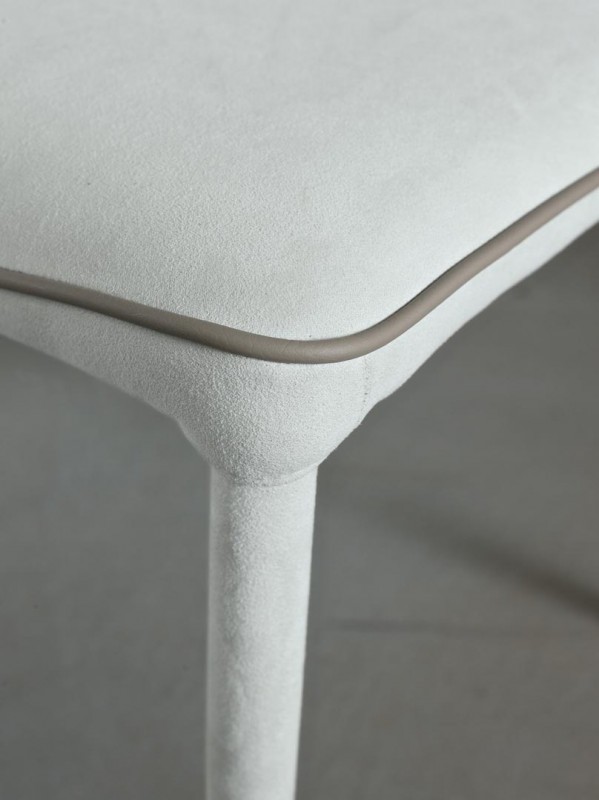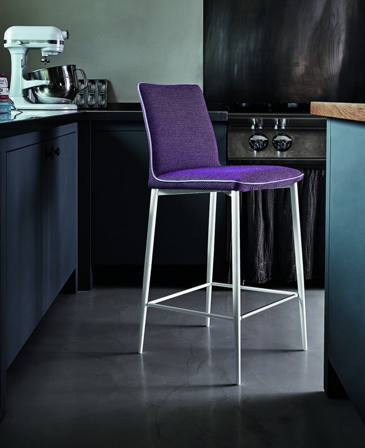Der Nata-Hocker von Bontempi hat eine Stahlstruktur, die gepolstert und mit zahlreichen Ausführungen in verschiedenen Farben bezogen ist. Wahlweise passende oder kontrastierende Verzierungen.