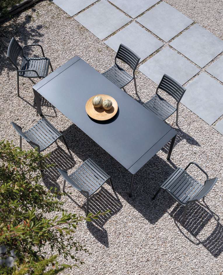 Sessel Nina von Vermobil. Ein schlichtes Design, das dem Sessel mit einer eleganten und zeitlosen Silhouette Charakter verleiht. Stuhl aus verzinktem Stahl mit Sitzfläche und Rückenlehne aus Polypropylen.