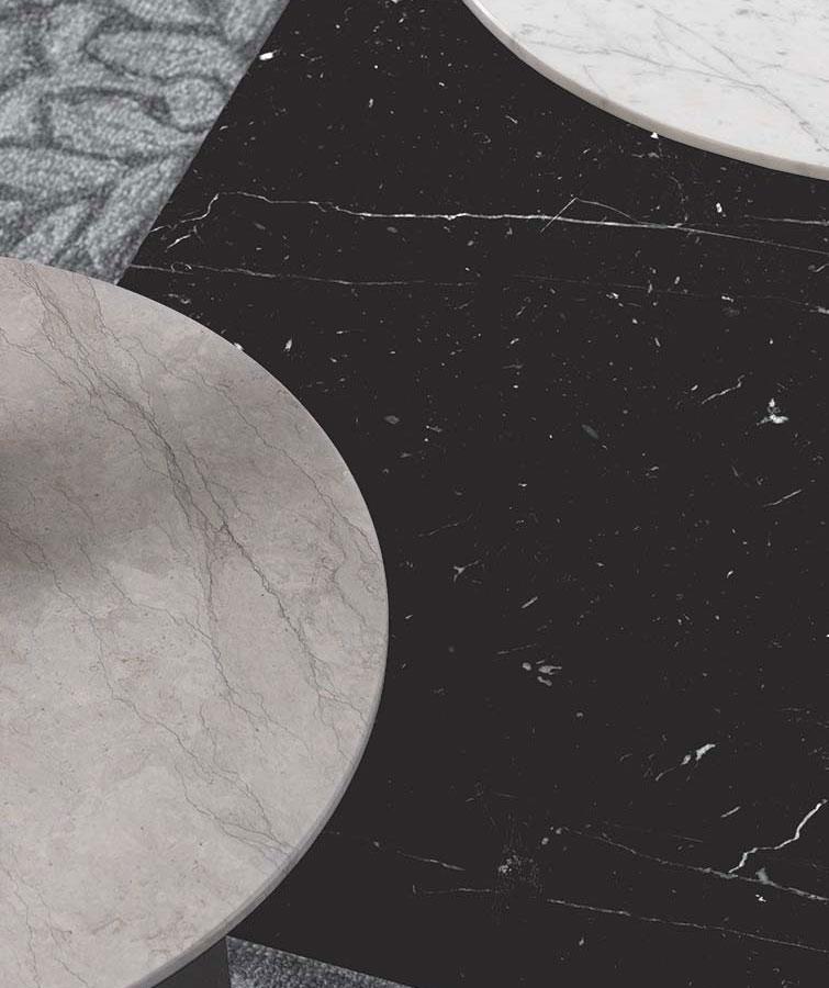 Die Nordic Couchtischserie von Pezzani besticht durch ein Stahlgestell mit spezieller Sandstrahloptik. Die Marmorplatte ist in runder oder rechteckiger Ausführung erhältlich. Der Tisch ist zudem in verschiedenen Größen und Farben erhältlich. Das raffinierte Design wertet Ihr Wohnzimmer auf und überrascht mit unerwarteter Funktionalität.