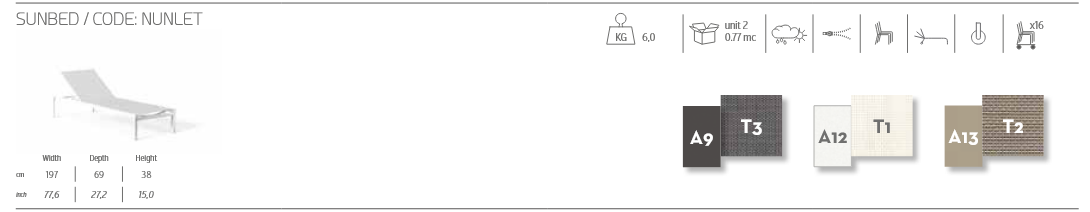 cm: L 197 x T 69 x H 38 mit optionaler NUNLETCOP-Abdeckung