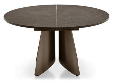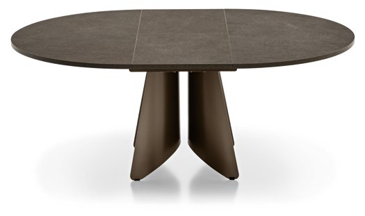 Orion, ausziehbarer runder Tisch von Connubia mit zentraler, buchförmiger Verlängerung. Der Orion Tisch ist in zahlreichen Ausführungen erhältlich.