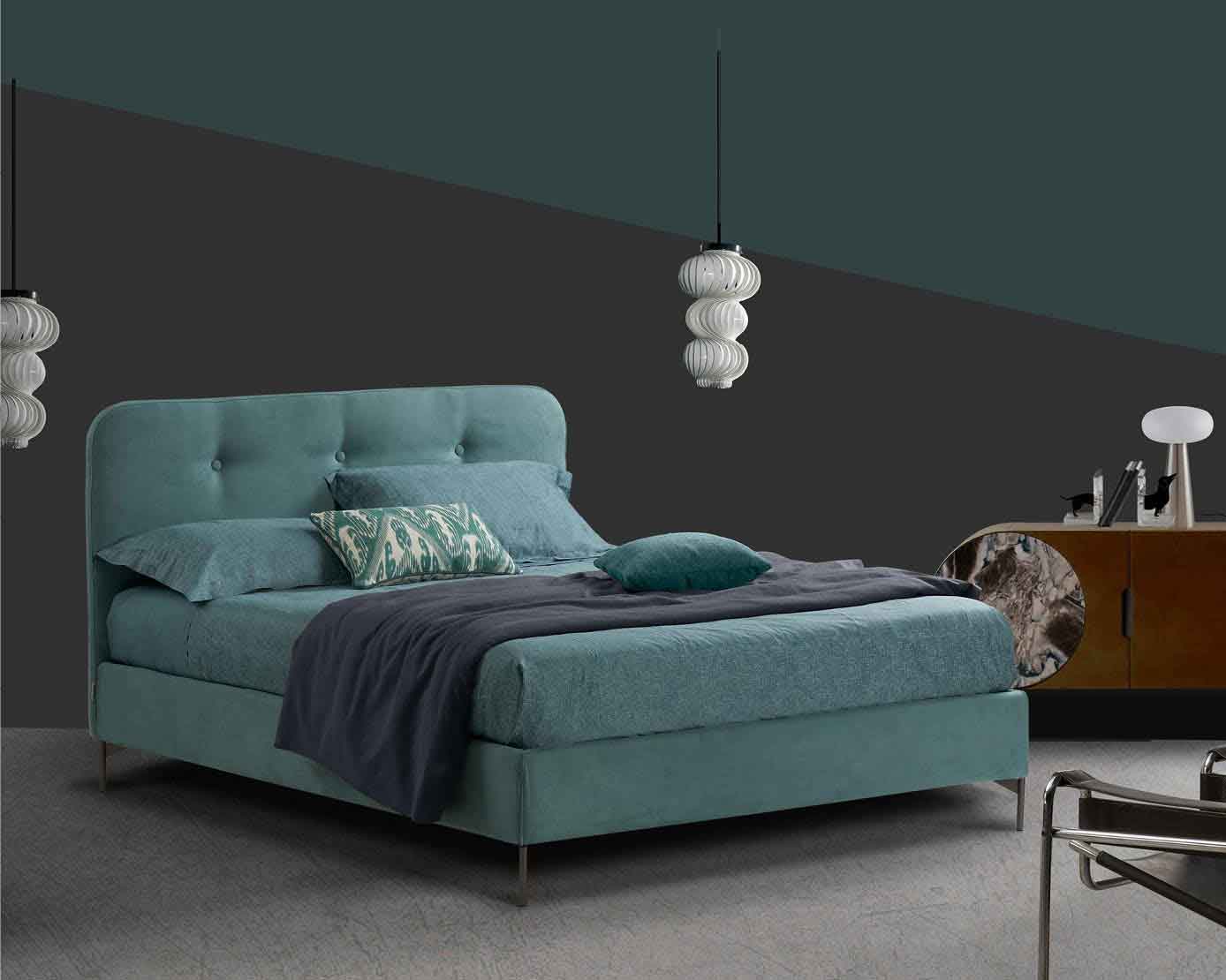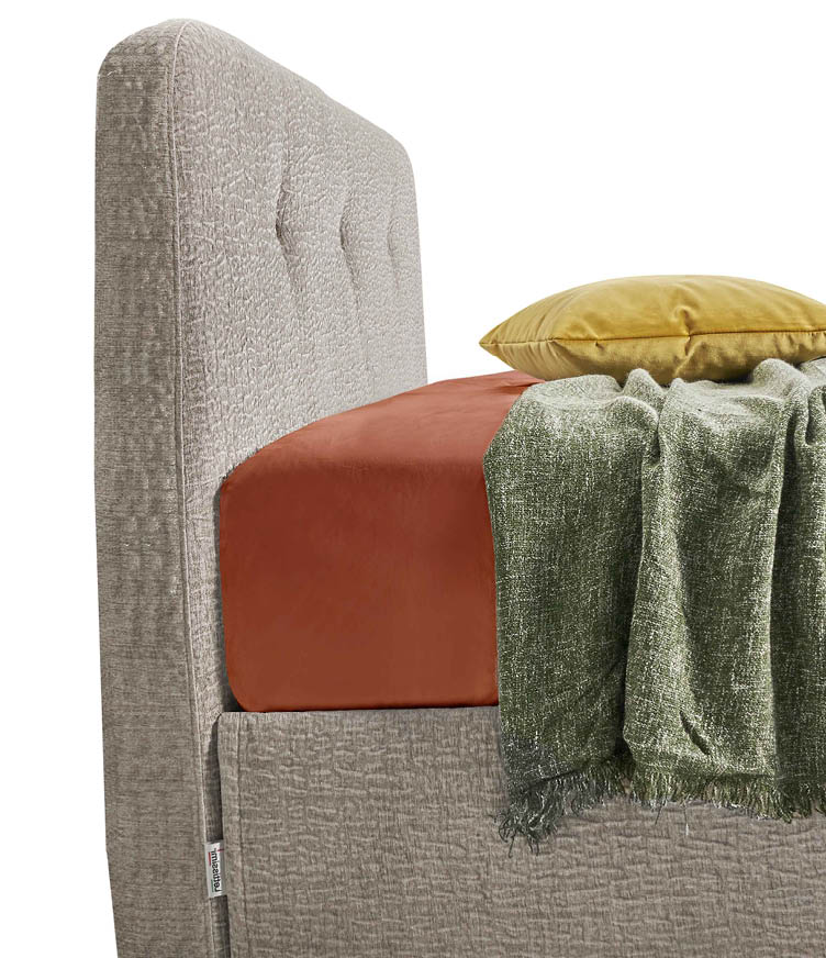 Dieses Bett ist für alle gedacht, die weiche und einladende Linien lieben. Die originellen Nähte am Kopfteil bereichern das Design des Produkts und verleihen ihm eine elegante Note im Retro-Stil.
