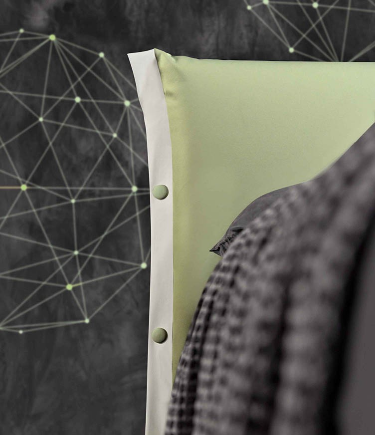 Die Knebelverschlüsse an der Seitenfrappa verleihen dem Abaco Bett einen unverwechselbaren Stil. Auf Wunsch können die Knebelverschlüsse in Ihrer Wunschfarbe geliefert werden.