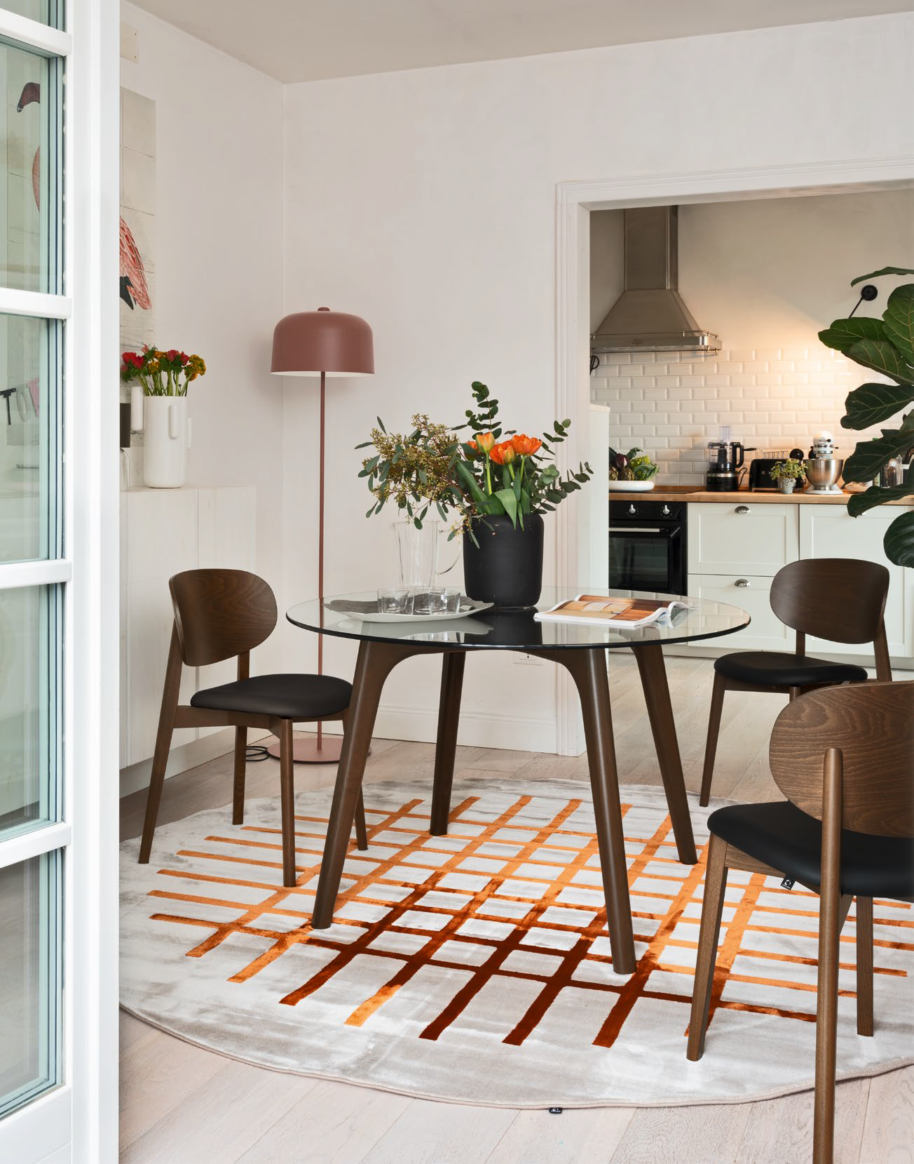 Runder Tisch Pod von Connubia mit Buchengestell und Tischplatte aus gehärtetem Glas. Pod ist ein eleganter und moderner Tisch, der die warme und robuste Optik von Holz mit der ätherischen und modernen Optik von Glas in einem faszinierenden Kontrast verbindet. Das Massivholzgestell verleiht den hellen, transparenten oder Rauchglasplatten besondere Stabilität und Robustheit. Diese lassen die raffinierte Verarbeitung des Holzes erkennen, das fein abgeschrägt und geglättet ist, um Oberflächen und Profile zu erhalten, die die Schönheit der Maserung hervorheben. Die konischen Beine verleihen Dynamik und Leichtigkeit, und die organische Verbindung zwischen ihnen und dem Querträger stellt ein markantes Detail dar.