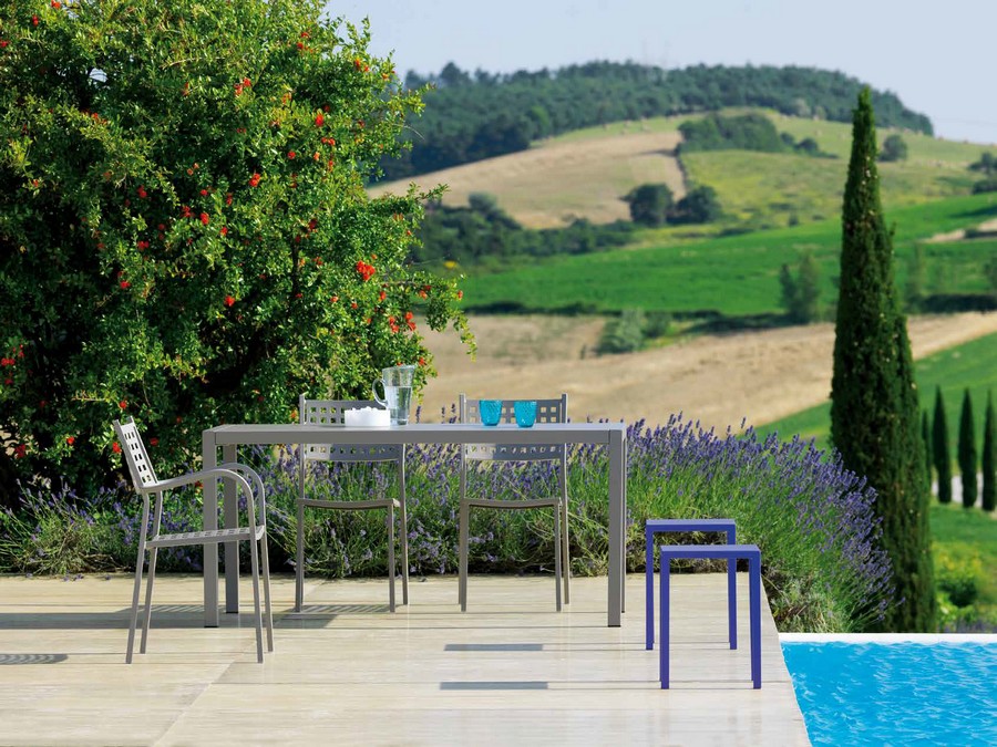 Moderne Linie für den Einsatz in jeder Situation dank der speziellen Struktur, die dem Tisch auf jeder Oberfläche Stabilität verleiht. Abnehmbarer Tisch.