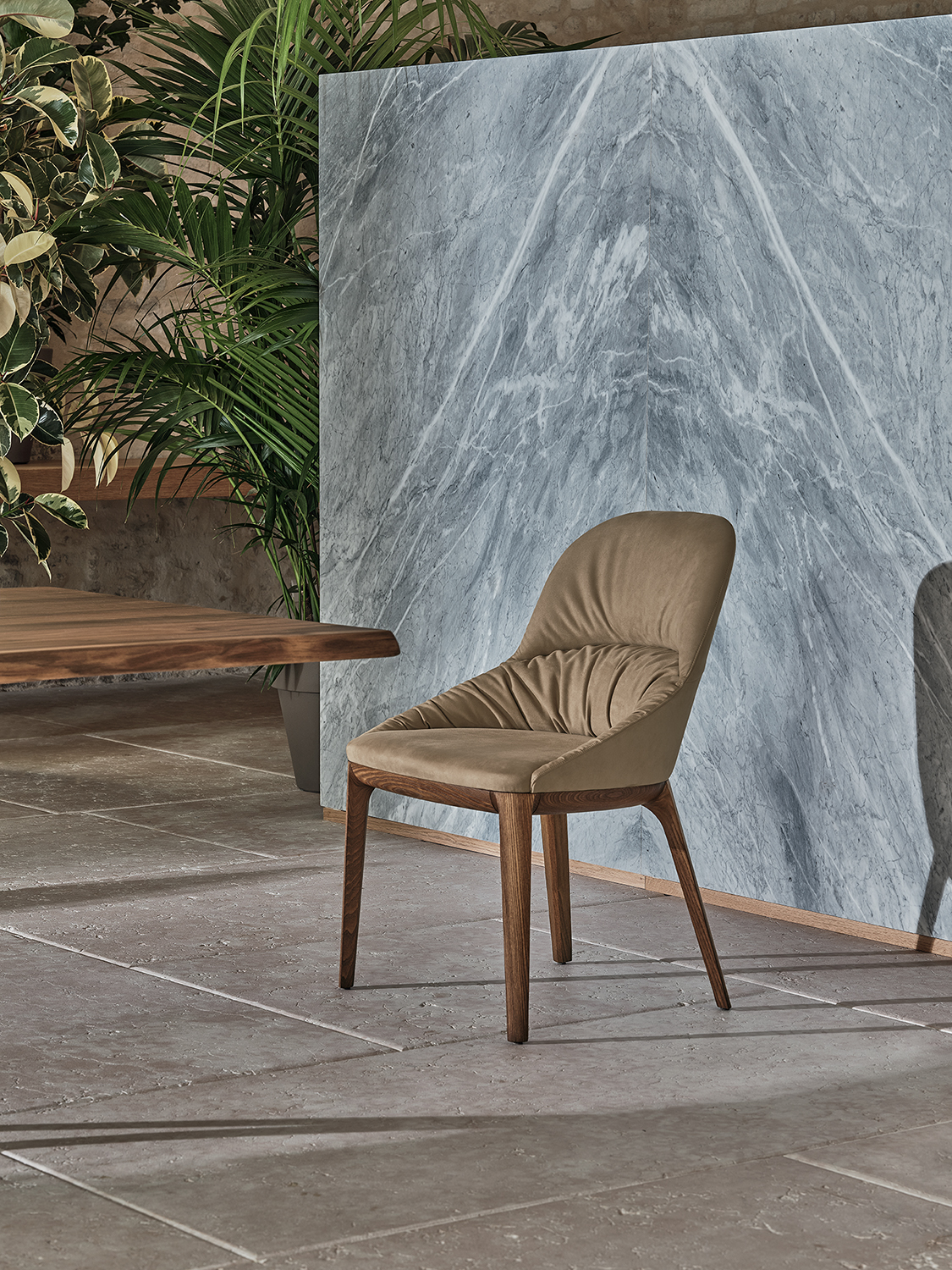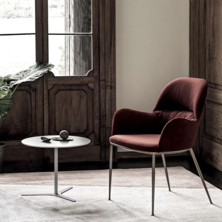 Queen-Stuhl von Bontempi, erhältlich mit oder ohne Armlehnen, mit Gestell aus Massivholz oder lackiertem Stahl. Gepolsterte und gepolsterte Schale in zahlreichen Ausführungen in verschiedenen Farben erhältlich.