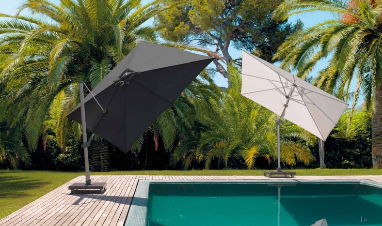 Verschiebung. Drehbarer Mast, der es ermöglicht, den Sonnenschirm zu drehen.