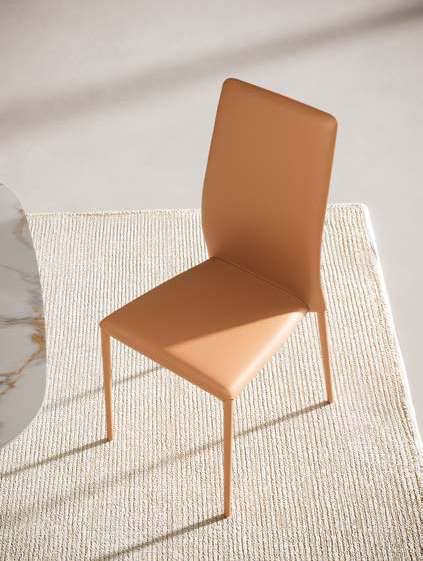 Renee-Stuhl mit Stahlstruktur, vollständig gepolstert und in zahlreichen Ausführungen bezogen.