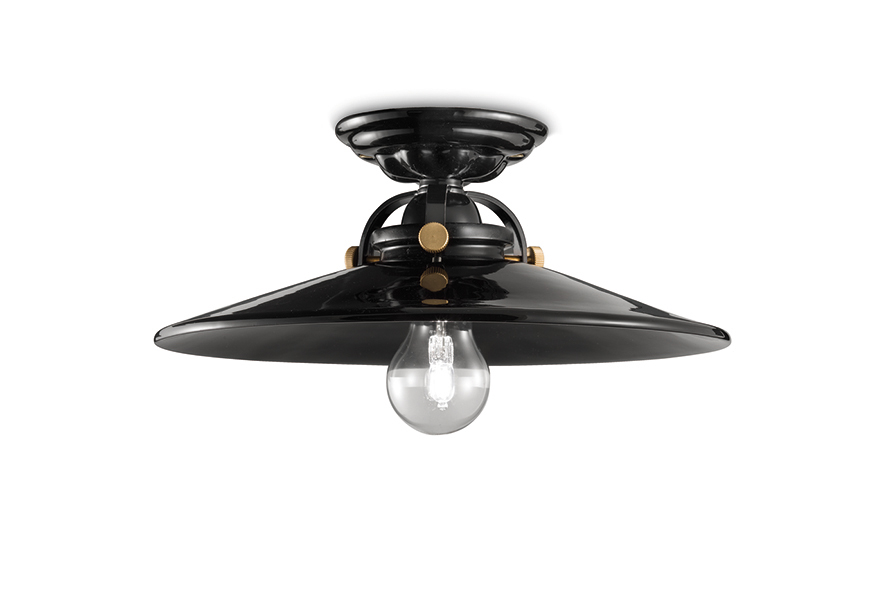 RETRO' B&W C104 Deckenleuchte von Ferroluce mit Keramikplatte, Keramiksockel, Messingrahmen, Lackierungsart: Pulver.
