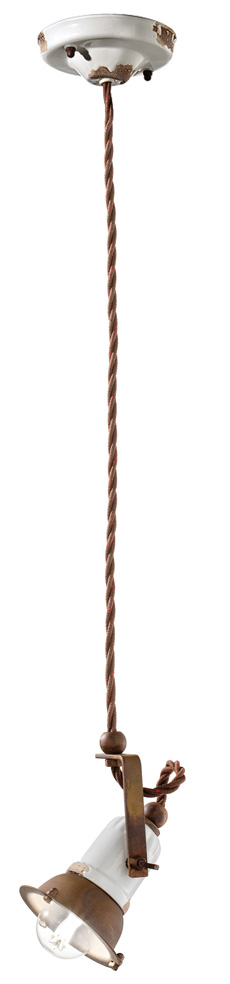 Retrò Loft C1660 Hängeleuchte von Ferroluce mit Hauptmaterial: Keramik, Metallteilen aus antikem Corteneisen und ummanteltem Baumwollkabel.