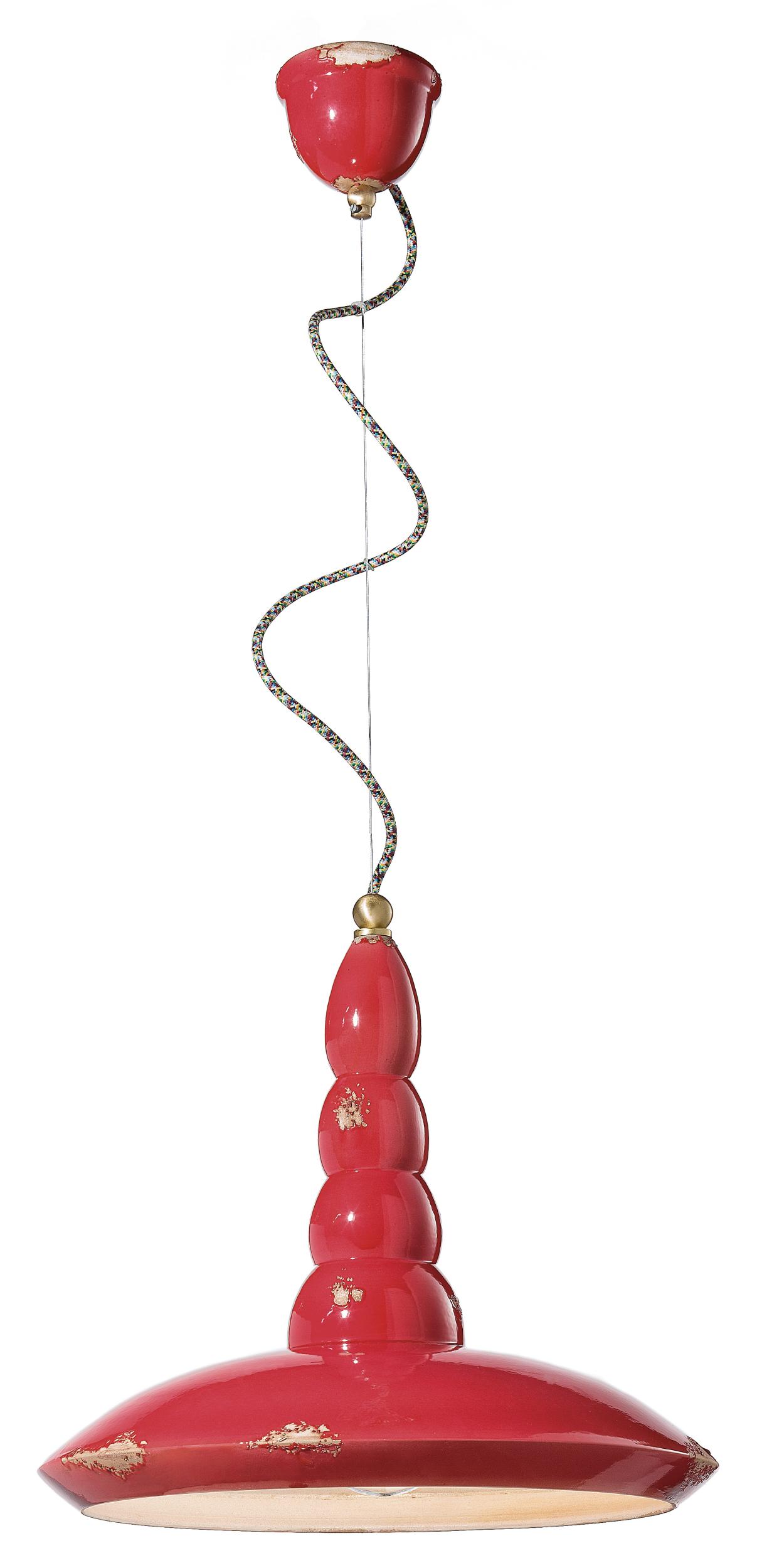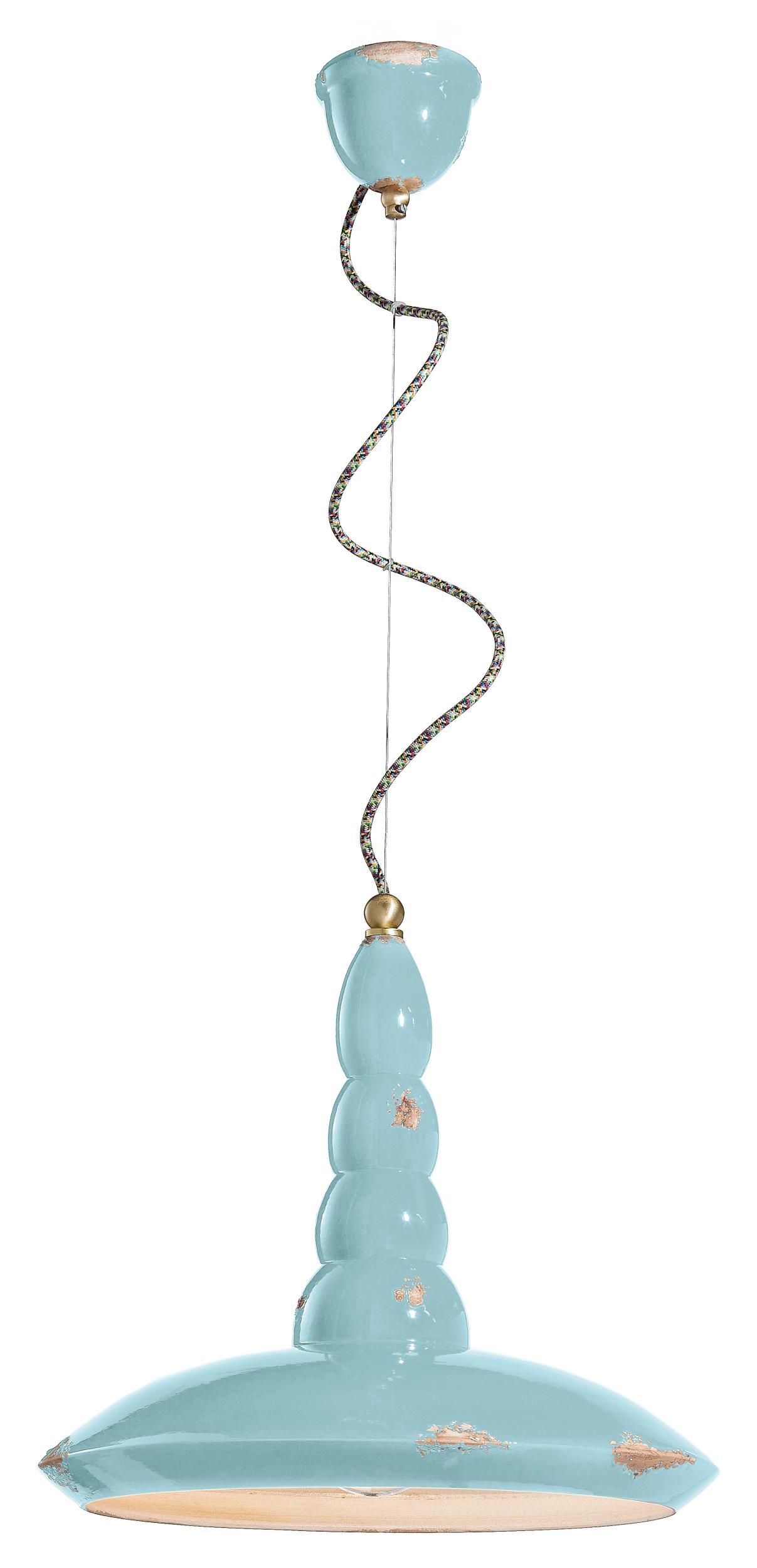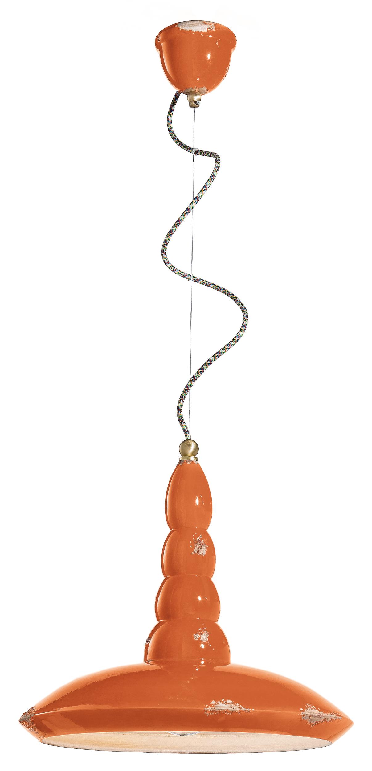RETRO' VINTAGE C1410 Hängeleuchte von Ferroluce mit Keramikplatte und -sockel, Messingmetallteilen und mehrfarbig ummanteltem Baumwollkabel.