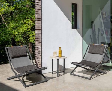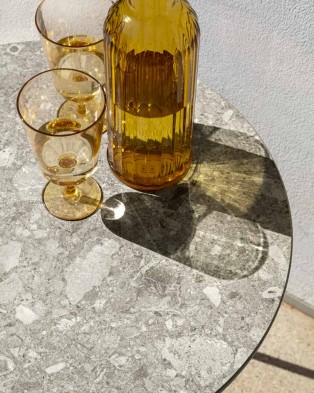 Die runde Ausführung, elegant und minimalistisch dank ihrer geometrischen Form, ist das perfekte Element, um Ihr Wohnzimmer im Freien zu vervollständigen.