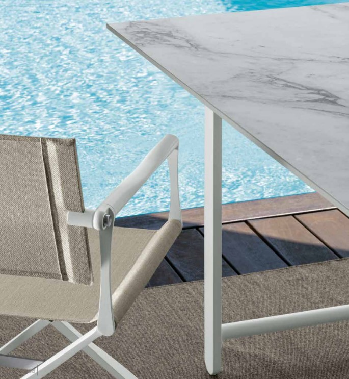 Der Esstisch Riviera ist das Herzstück Ihres Außenbereichs. Modern und elegant vereint er wetterbeständige Materialien mit zeitlosem, elegantem Design. Gefertigt aus Aluminium für das Gestell und Feinsteinzeug für die Tischplatte – beides wetter- und UV-beständig – ist er ideal, um einen einladenden Wohnraum mit einem markanten, raffinierten Stil zu schaffen. Schlicht und praktisch in seinen Linien, gleichzeitig aber edel und elegant in den Materialien, ist der Esstisch Riviera perfekt, um Ihren Außenbereich in vollen Zügen zu genießen. Der Esstisch aus der Riviera-Kollektion (210 x 100 cm) bietet Platz für bis zu 8 Personen, die Variante mit 260 x 110 cm sogar für bis zu 10 Personen.