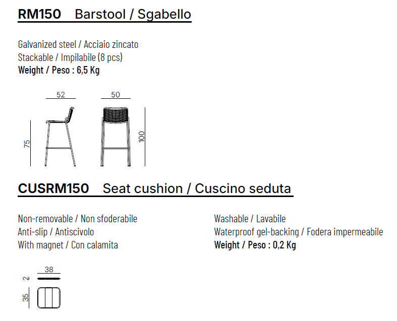 cm: L. 50 x T. 52 x H. 100 x HS. 75