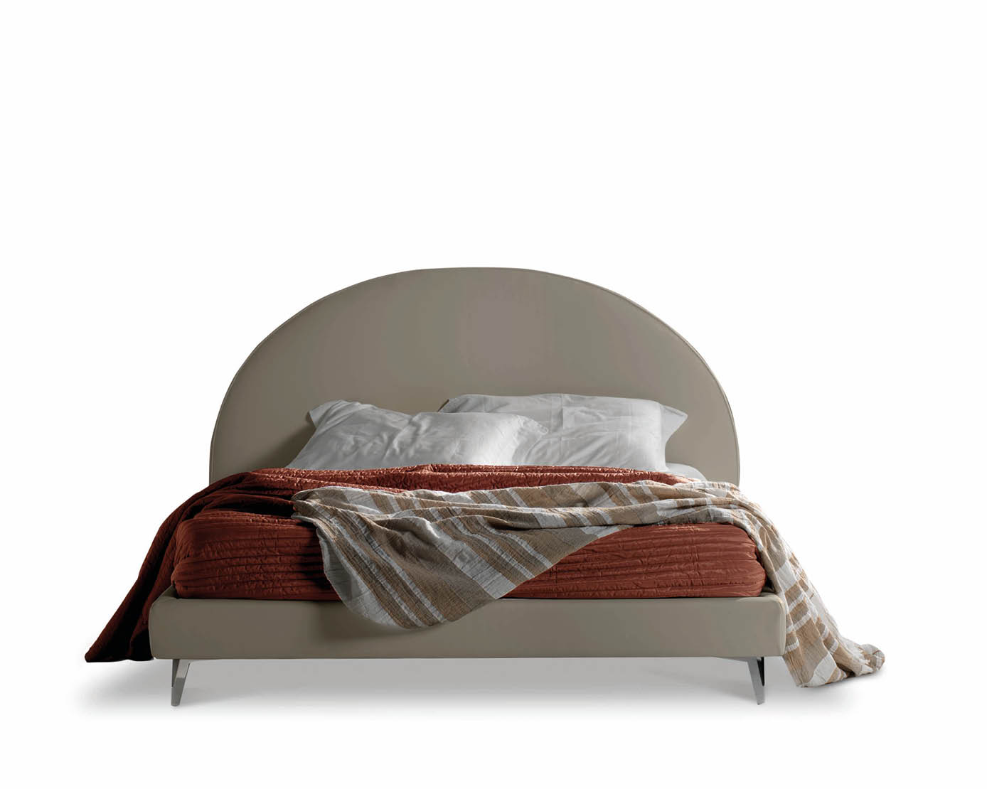 Wie eine kleine Loggia bildet das Kopfteil von Rondò einen Rundbogen, der an die Formen der italienischen Renaissance-Architektur erinnert. Ein Kunstobjekt, das mit seinen abgerundeten und harmonischen Linien die Möglichkeit bietet, ein Bett ohne Kanten zu haben, das perfekt rund wird, wenn seine bereits bezaubernde Silhouette mit der abgerundeten Basis kombiniert wird. Das Bett Rondò bleibt sicherlich nicht unbemerkt und nimmt zu Recht die Rolle des Protagonisten des Schlafbereichs ein.