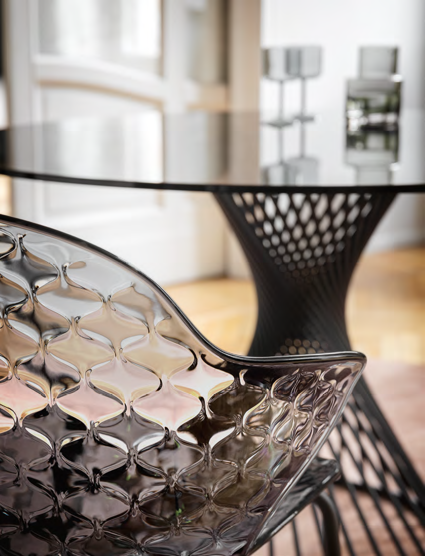 Der kreative Geist, ein Treffpunkt zwischen Design und Funktion, zeichnet den Stuhl SAINT TROPEZ aus, dessen wesentliche Merkmale die Liebe zum Detail und ein raffiniertes, dekoratives Design mit der Schaffung einer Rückenlehne in Steppoptik sind.