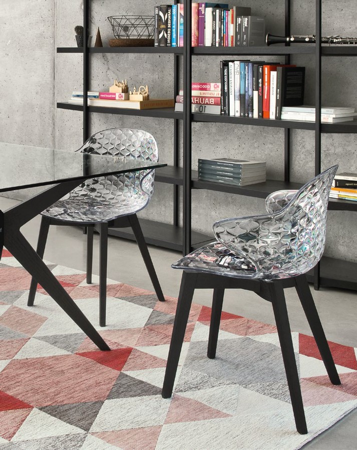 Die Schale aus Polypropylen oder Polycarbonat ist in verschiedenen transparenten oder undurchsichtigen Farbtönen erhältlich und sitzt auf einem vierbeinigen Holzsockel. Wählen Sie Ihren Favoriten.