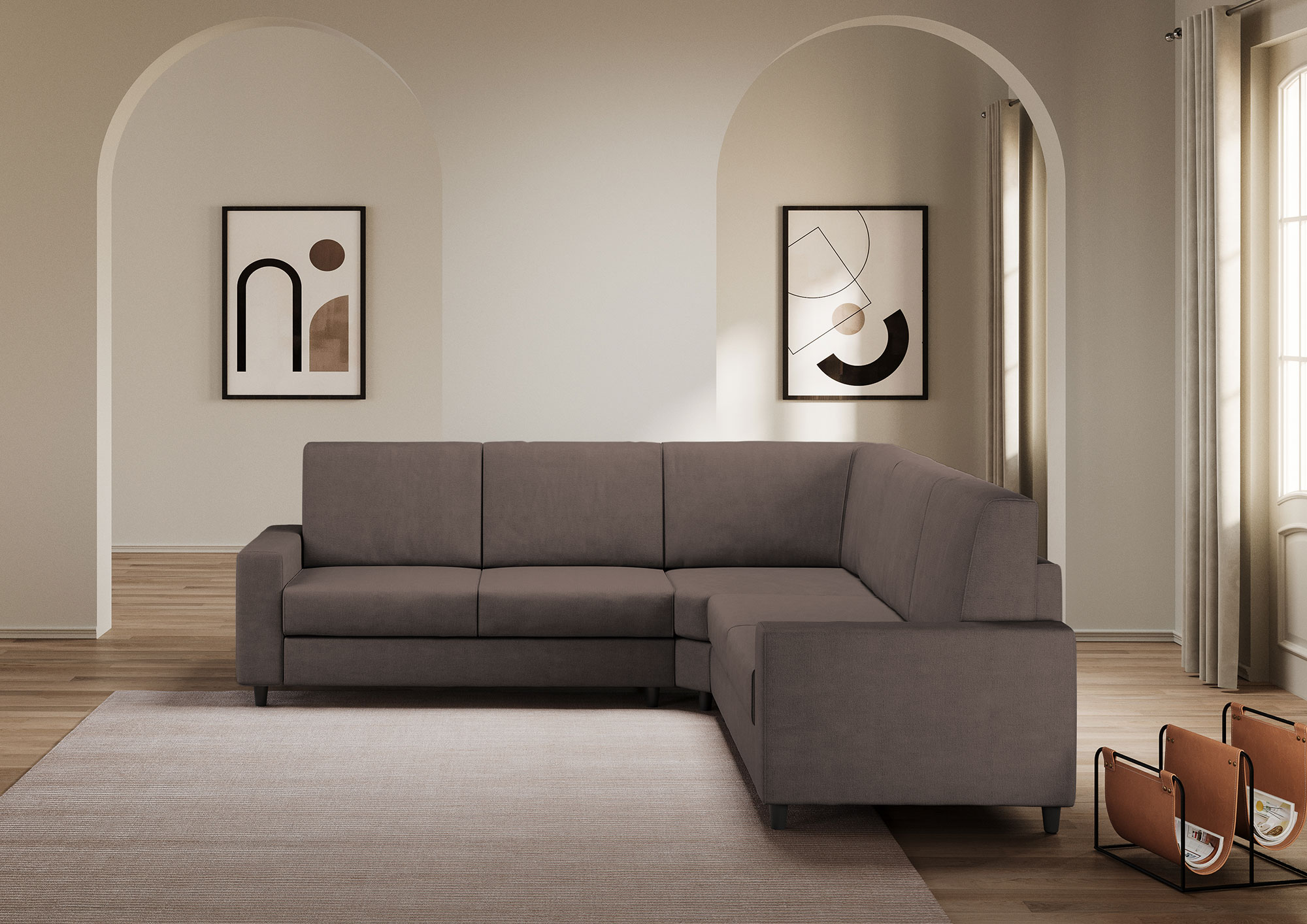 Das 5-Sitzer-Ecksofa Sakar ist das Möbelstück, das Sie für Ihr Wohnzimmer gesucht haben. Dieses Sofa vereint Komfort, Design, Platz und Funktionalität in einem einzigen Produkt. Der Sitz ist dank des hochwertigen Schaumstoffs weich und bequem. Der Stil ist modern und minimalistisch, mit klaren Linien und neutralen Farben, die sich jeder Art von Umgebung anpassen. Das Ecksofa Sakar eignet sich perfekt zum Entspannen und zum Empfangen von Gästen. Nutzen Sie das Angebot und erwerben Sie das 5-Sitzer-Ecksofa Sakar, das geräumige und elegante Sofa für Ihr Wohnzimmer.