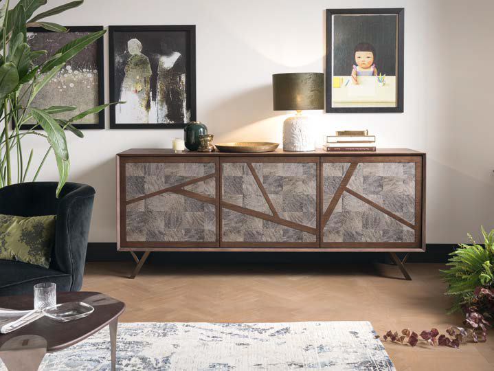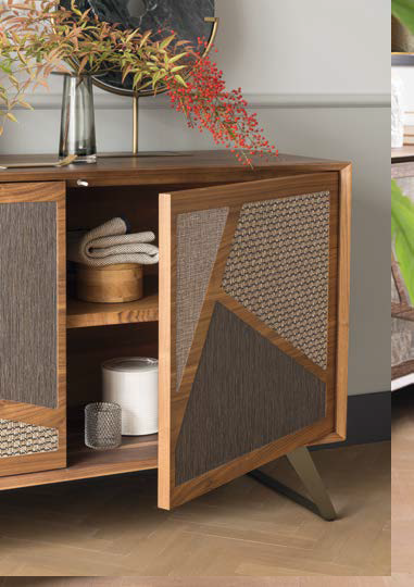 Sakura Sideboard von Altacorte 3 Flügeltüren mit 3 internen Holzregalen. Das Sakura-Sideboard ist in zahlreichen Ausführungen erhältlich, mit der Möglichkeit einer maximalen Individualisierung der Türen dank der Wahl der Ausführungen (Stahl oder Struktur) der geometrischen Einsätze, aus denen sie bestehen. Außerdem ist es möglich, die Basis des Sakura-Sideboards zu wählen. Erhältlich in drei Versionen, außerdem ist es in zahlreichen Ausführungen erhältlich. Die Linien des Sakura-Sideboards sind von der japanischen Kultur und insbesondere vom Kirschbaum inspiriert. Die zerlegten geometrischen Muster verleihen einen Hauch raffinierter Raffinesse.