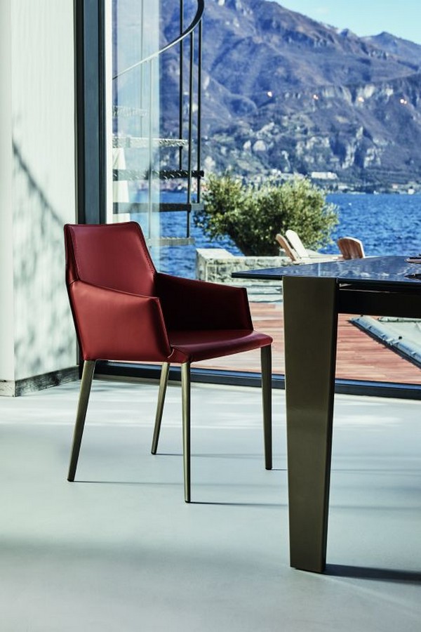 Sally Stuhl von Bontempi, elegant und stilvoll. Dieser Stuhl wird mit einem Kern komplett aus gebeiztem Stahl oder aus Massivholz in verschiedenen Ausführungen hergestellt. Der Sitz und die Rückenlehne sind mit Leder in verschiedenen Farben mit passenden oder kontrastierenden Nähten bezogen. Dieser Stuhl eignet sich perfekt zur Dekoration von Räumen in Ihrem Zuhause wie dem Wohnzimmer, der Küche oder sogar dem Schlafzimmer. Erhältlich mit oder ohne Armlehnen.