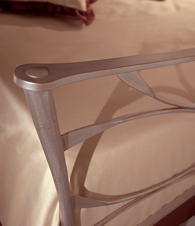 Enea Doppelbett von Pama Schmiedeeiserne Betten. Ein Bett, das in drei verschiedenen Versionen erhältlich ist: nur Kopfteil, Kopfteil mit Bettrahmen oder Kopfteil und Fußteil. Das Bett ist in verschiedenen Ausführungen erhältlich. Die Betten von Pama Letti unterscheiden sich durch den unterschiedlichen Eisenanteil, der in der Produktionsphase verwendet wird, und reichen von einem röhrenförmigen Produkt bis zu einem anderen aus massivem Eisen. Das Modell Enea wird mit einem Anteil von 100 % produziert. Elegant geschmiedet und von Hand mit handwerklichem Können und hochwertigen Materialien dekoriert, verschönern sie Ihren Raum und verleihen ihm einen Hauch von Raffinesse, Charme und Anmut. Möglichkeit, gegen Aufpreis ein Kopfteilkissen hinzuzufügen