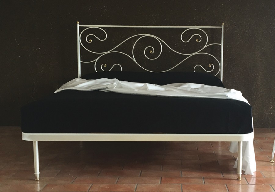 Cosmo Doppelbett von Pama Schmiedeeiserne Betten. Ein Bett, das in drei verschiedenen Versionen erhältlich ist: nur Kopfteil, Kopfteil mit Bettrahmen oder Kopfteil und Fußteil. Das Bett ist in verschiedenen Ausführungen erhältlich. Pama Letti-Betten unterscheiden sich durch den unterschiedlichen Eisenanteil, der in der Produktionsphase verwendet wird; Wir wechseln von einem Rohrprodukt zu einem anderen aus massivem Eisen. Das Cosmo-Modell wird mit einem Prozentsatz von 99-75 % hergestellt.