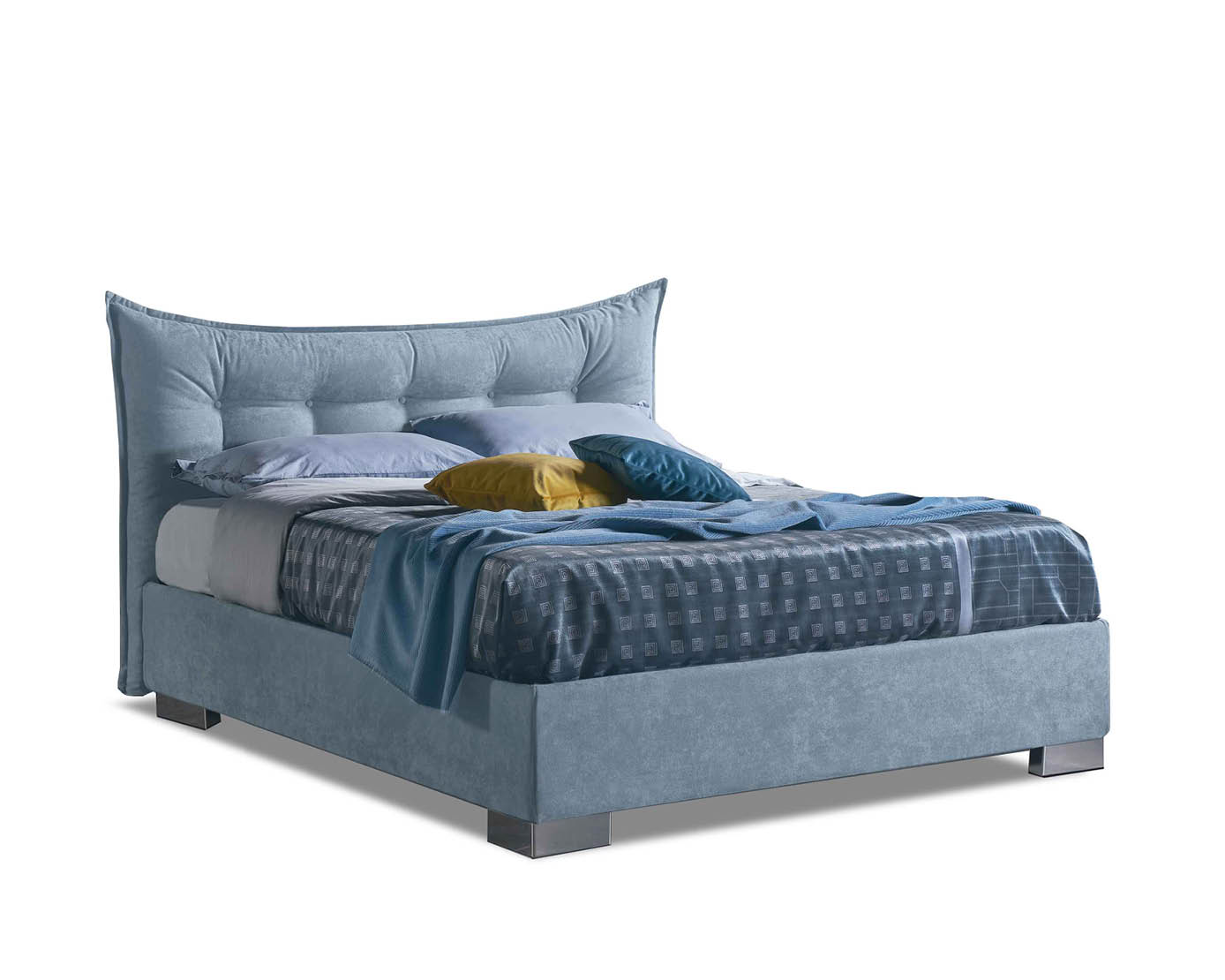 Das Kopfteil mit karierter Verarbeitung bereichert und verschönert Selene. Ein Produkt mit zweifellos königlichen Linien, das der unbestrittene Protagonist Ihres Schlafbereichs sein wird.