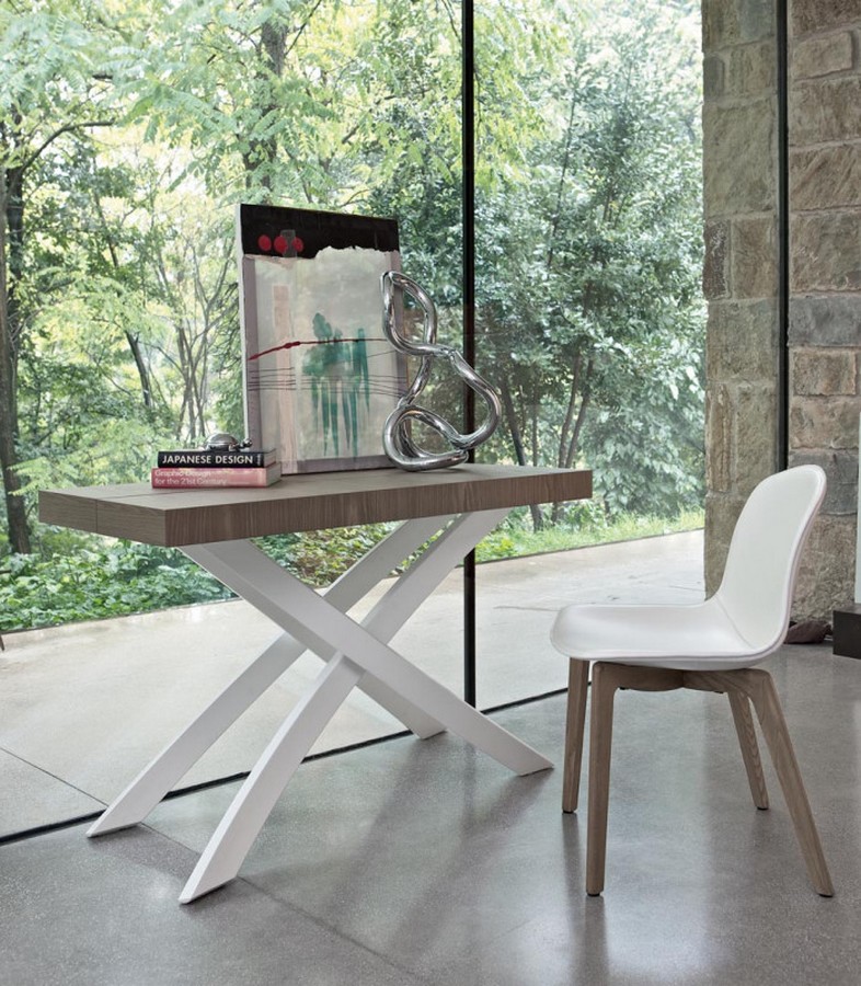 Stuhl Seventy von Bontempi, gepolstert und mit ökologischem Leder oder Fell bezogen, mit kontrastierenden oder passenden Nähten. Der Stuhl Seventy von Bontempi mit Gestell aus Massivholz oder Stahl in den drei verfügbaren Versionen: 4 Beine, drehbarer Bock oder 4 drehbare Speichen. Seventy ist ein Chamäleonstuhl, der sich durch seine Eleganz und Multifunktionalität auszeichnet, ein Sitz, dessen Komfort und Design sich an jede vielseitige Verwendung anpassen.