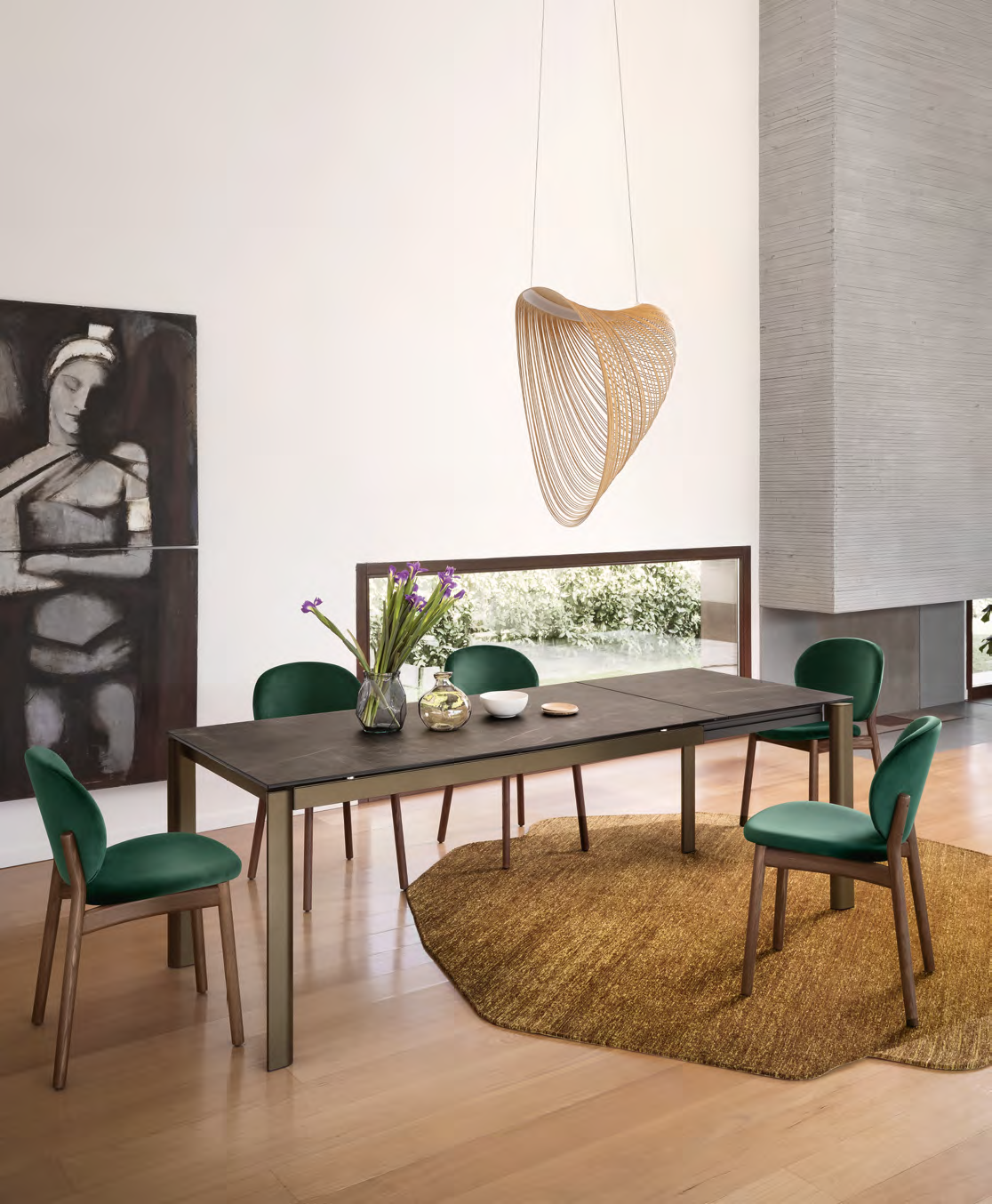 STREAM CS4139-R Tisch von Calligaris. Das besondere Merkmal des ausziehbaren Tisches Stream ist der originelle Querschnitt der Beine, der durch ein für Tische dieser Kategorie ungewöhnliches Subtraktions- und Schleifverfahren erzielt wird. Er ist kompakt und leicht zugänglich. Die Beine tragen eine Tischplatte, die in verschiedenen Materialien und Ausführungen erhältlich ist und sich dank eines Systems mit wenigen Handgriffen leicht ausziehen lässt. Charakteristisch sind die schlanke Struktur aus lackiertem Aluminium und die Tischplatten aus Holz oder Keramik. Der Öffnungsmechanismus im Buchstil besteht aus dem gleichen Material wie die Tischplatte.