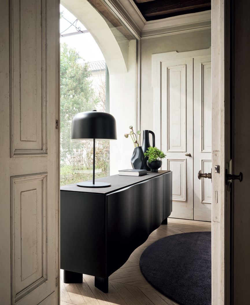 Eine geschwungene, asymmetrische Linie, die einen angenehmen Welleneffekt erzeugt. Die Sinuosa-Tür ist für diejenigen gedacht, die organische Formen lieben und die Balance zwischen strenger Geometrie und weichen, fast handgezeichneten Linien beruhigend finden.