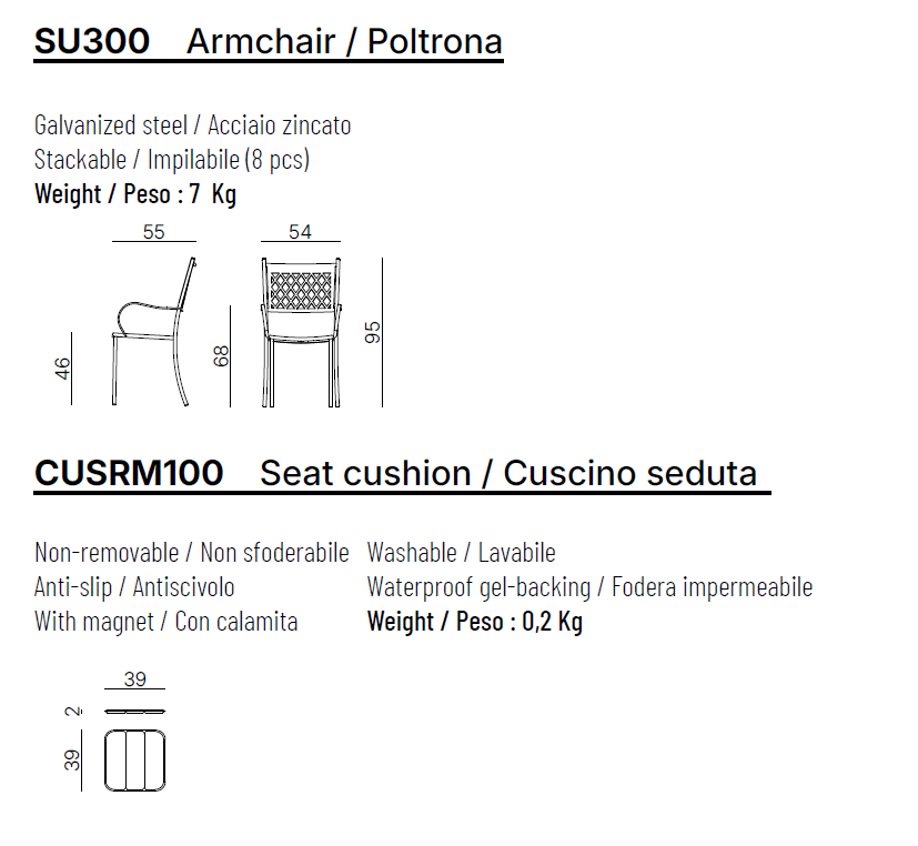 cm: L. 54 x T. 55 x H. 95 x HS. 46 x HB. 68
