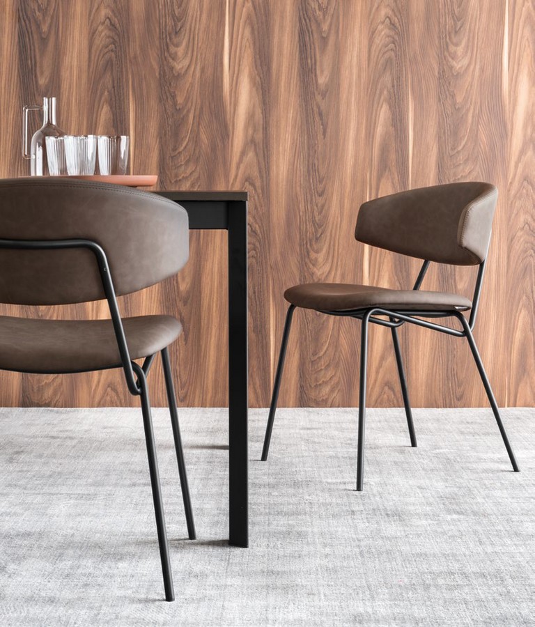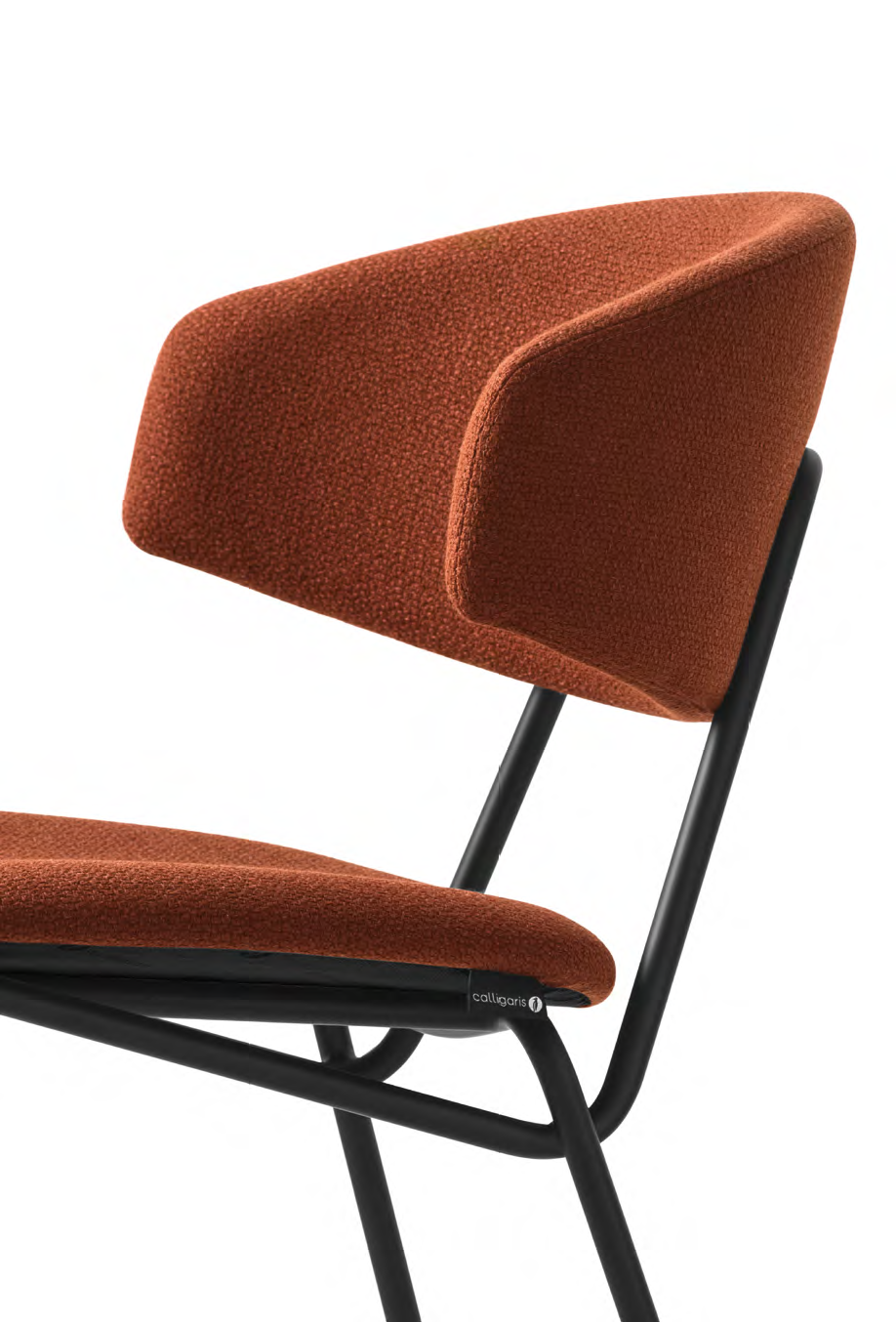 SOPHIA ist ein Stuhl, der sich von der Masse abhebt und dennoch ein durchdachtes und geradliniges Design aufweist. Sein charakteristisches Merkmal ist das Zusammenspiel geometrischer Formen zwischen zwei dünnen Metallrohren, die den Sockel bilden. Die gepolsterte Rückenlehne und Sitzfläche aus Sperrholz sind an diesem Sockel verankert. Der leichte und dennoch robuste Stuhl passt in jede Umgebung.
