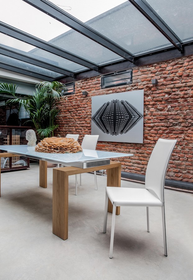 Madeleine Stuhl von Tonin Casa mit Metallstruktur komplett mit echtem Leder bezogen. Madeleine ist der perfekte Stuhl, einzigartig und zeitlos mit einer bestimmten Form für die Rückenlehne: Eine Kurve kehrt fügsam zurück, um den Sitz nach unten zu begleiten und die geometrischen Formen von Madeleine zu bewegen. Die Lederausstattung unterstreicht die Eleganz und die Version mit Armlehnen ist der maximale Ausdruck.